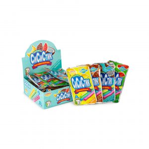 Мягкие конфеты в соломинках с татуировкой "СиСиСтик" со вкусами арбуза, кокоса, банана, шоколада ZVN 120 г (5 г * 24 шт)