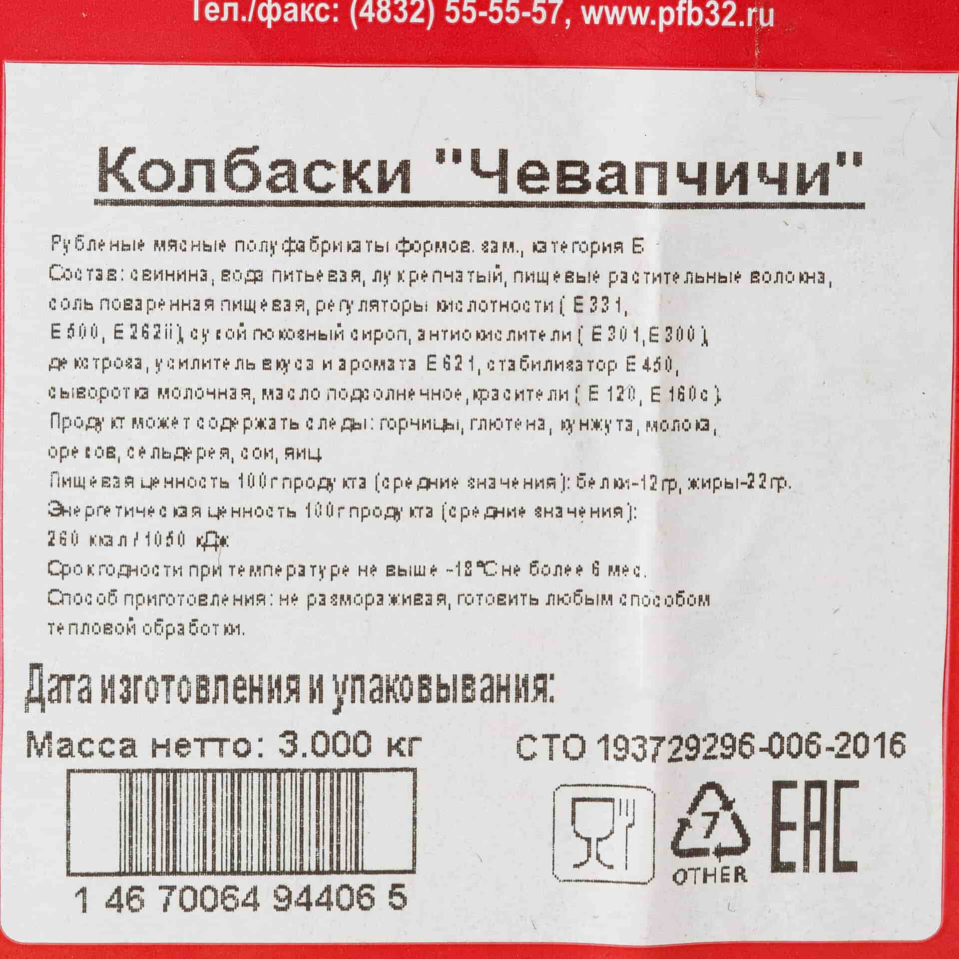 Колбаски из свинины "Чевапчичи" полуфабрикат замороженный Брянские полуфабрикаты 3 кг