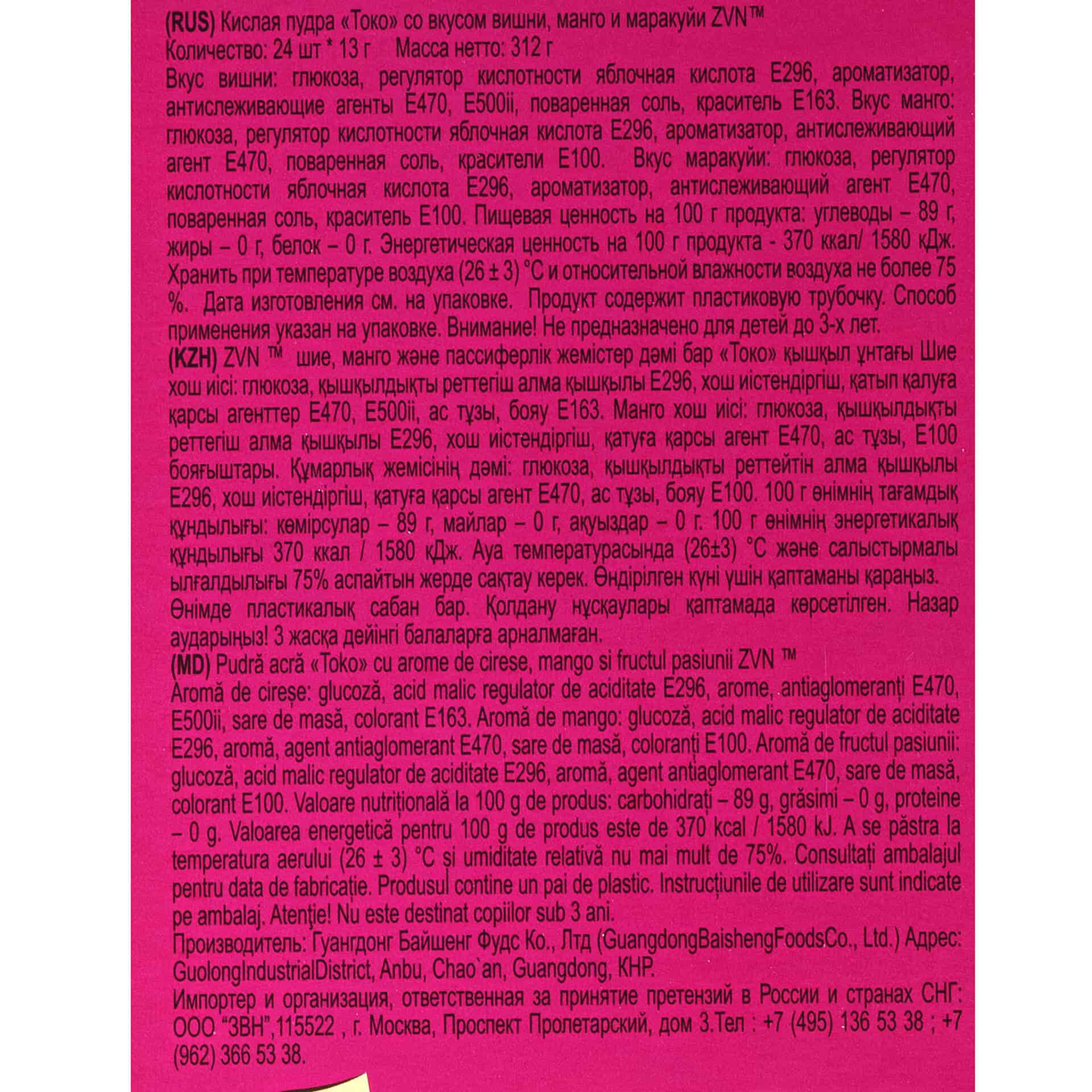 Кислая пудра "Токо" со вкусами вишни, манго, маракуйи ZVN 312 г (13 г * 24 шт)