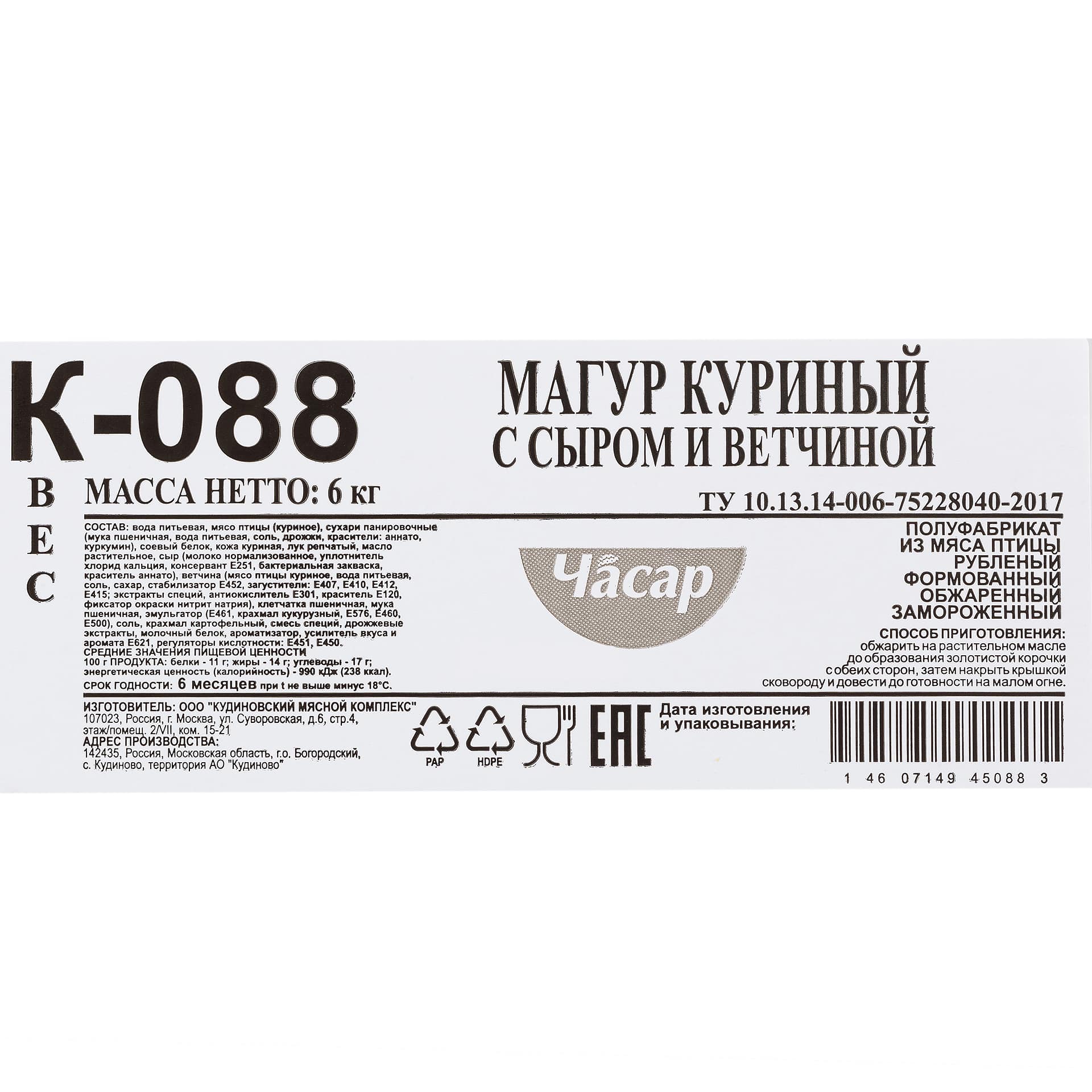 Магур куриный с сыром и ветчиной в панировке полуфабрикат обжаренный замороженный Часар 6 кг