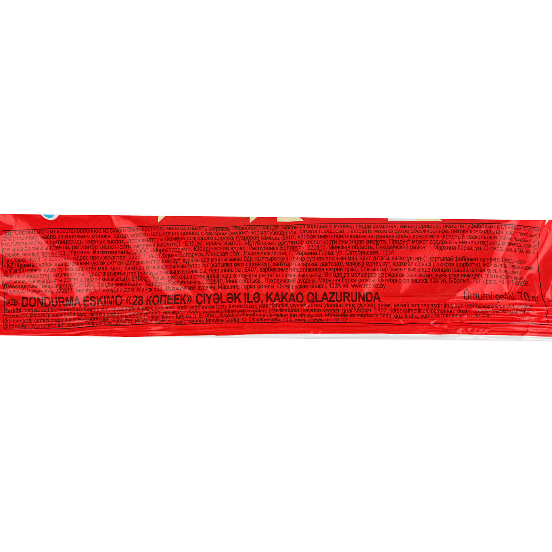 Мороженое пломбир клубничный в шоколадной глазури эскимо 28 копеек 70 г