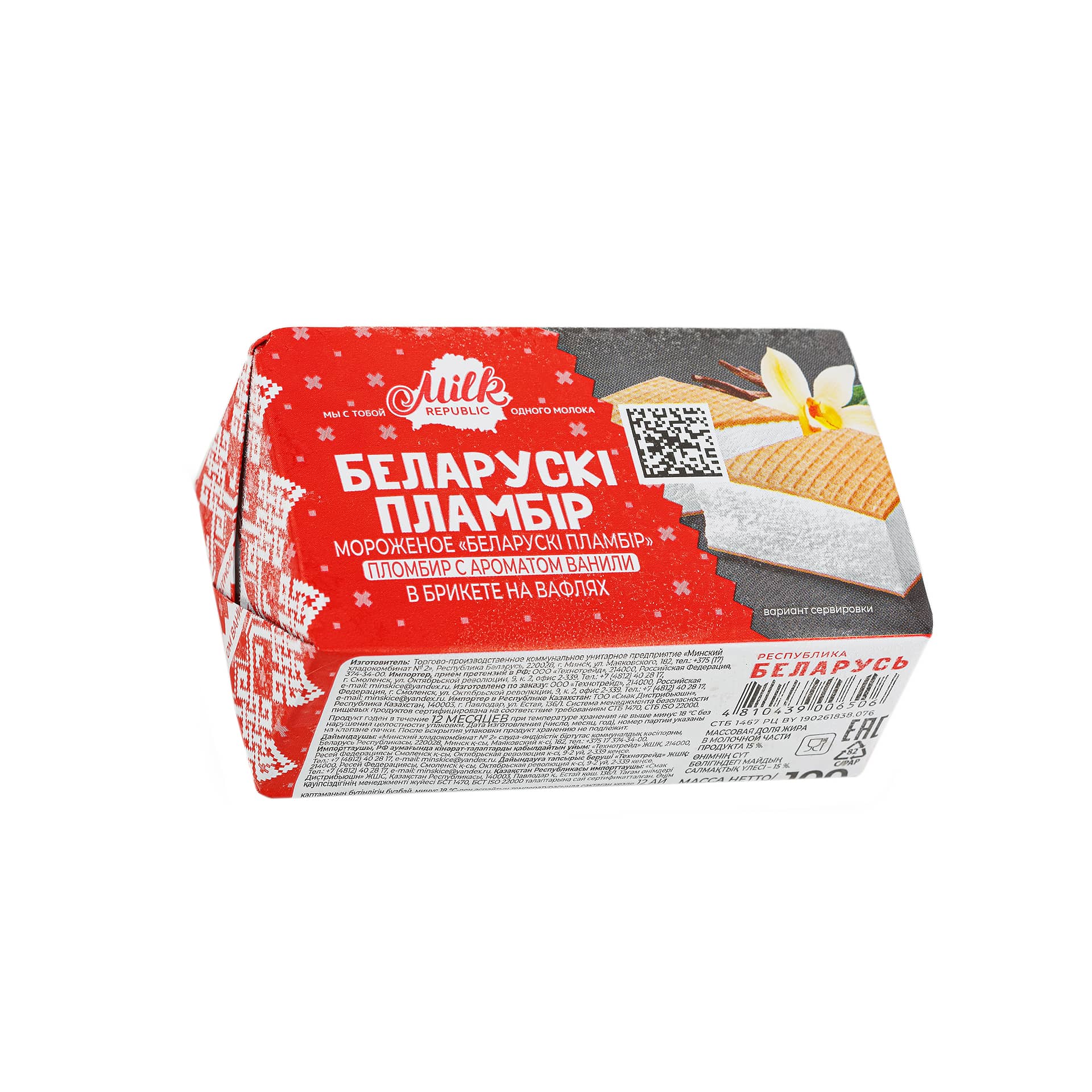 Мороженое пломбир с ароматом ванили брикет в вафлях Беларускi пламбiр 100 г
