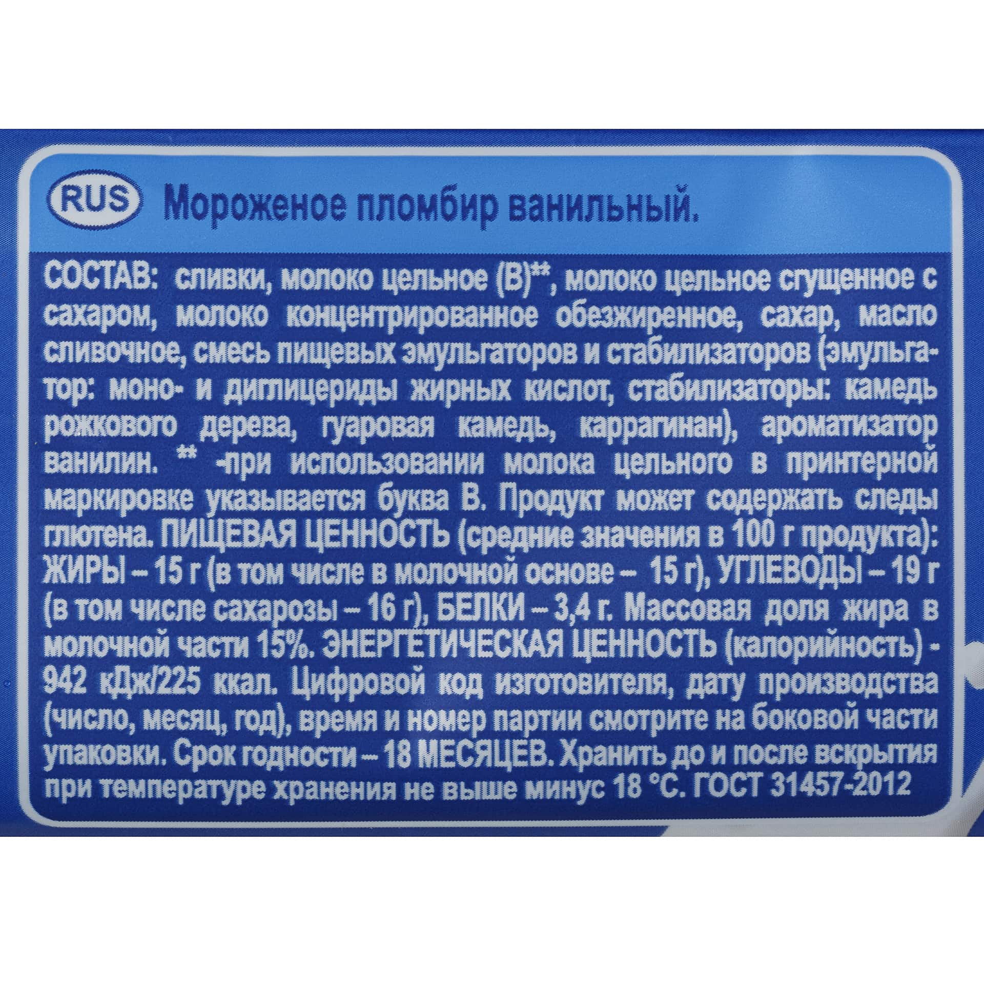 Состав: сливки, молоко цельное (В)**, молоко цельное сгущённое с сахаром, молоко концентрированное обезжиренное, сахар, масло сливочное, смесь пищевых эмульгаторов и стабилизаторов (эмульгатор: моно- и диглицериды жирных кислот, стабилизаторы: камедь рожкового дерева, гуаровая камедь, каррагинан), ароматизатор ванилин. ** — при использовании молока цельного в принтерной маркировке указывается буква В.