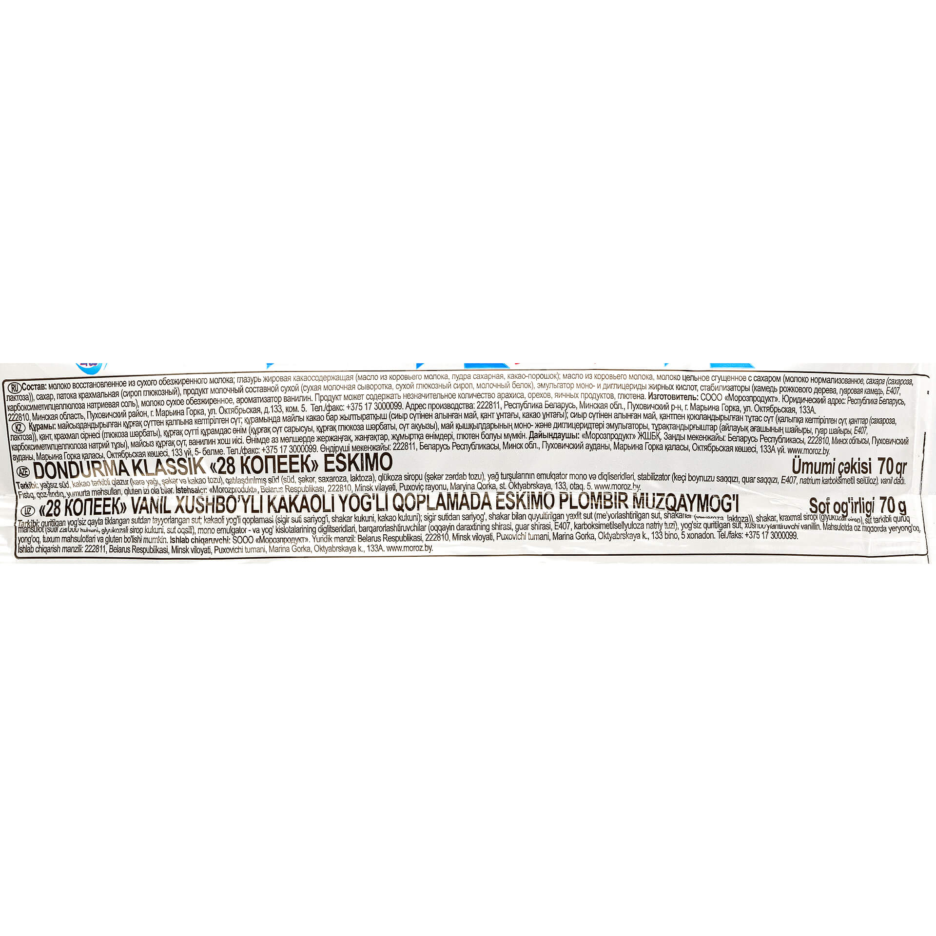 Мороженое пломбир ванильный в шоколадной глазури эскимо 28 копеек 70 г
