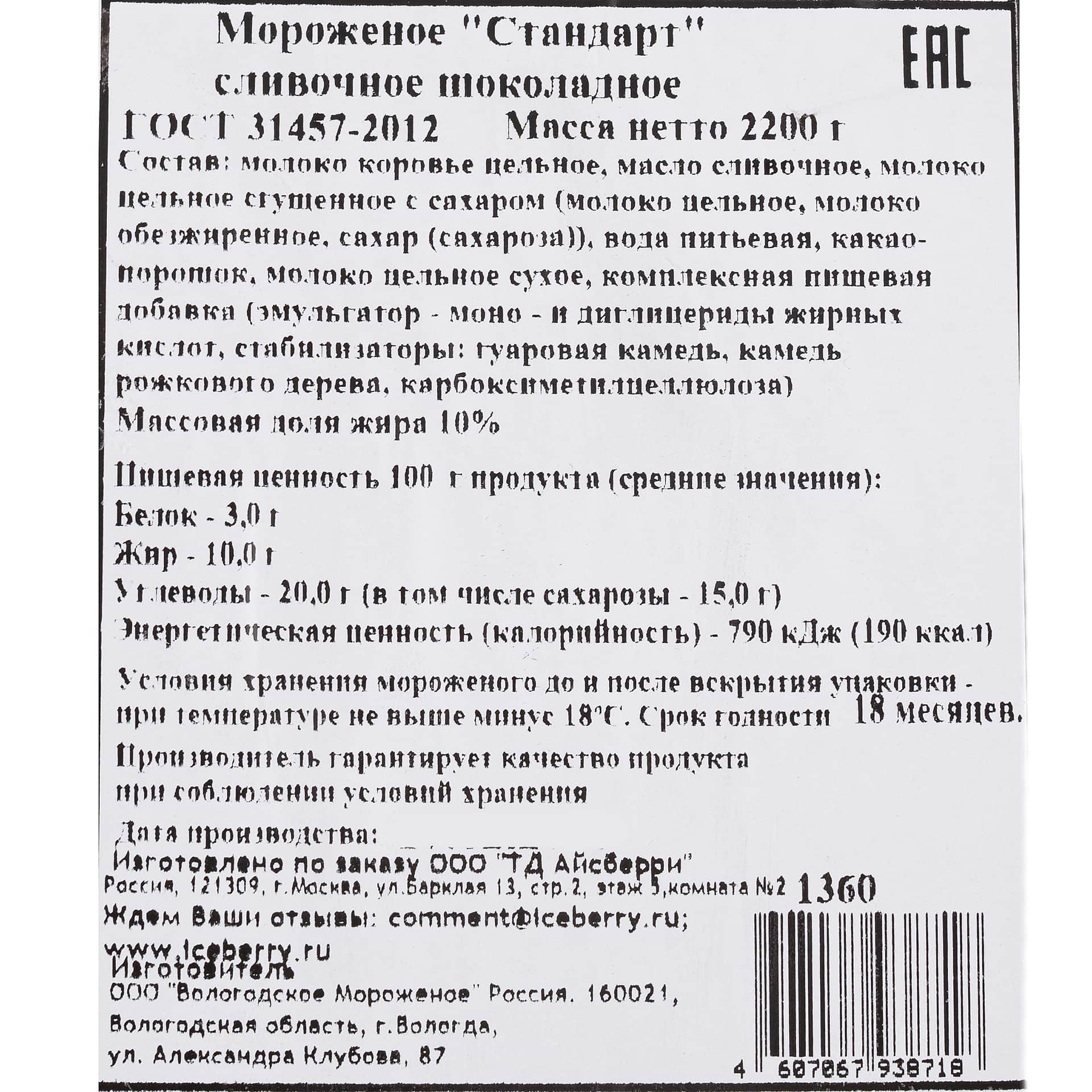 Мороженое сливочное шоколадное "Стандарт" лоток Айсберри 2,2 кг