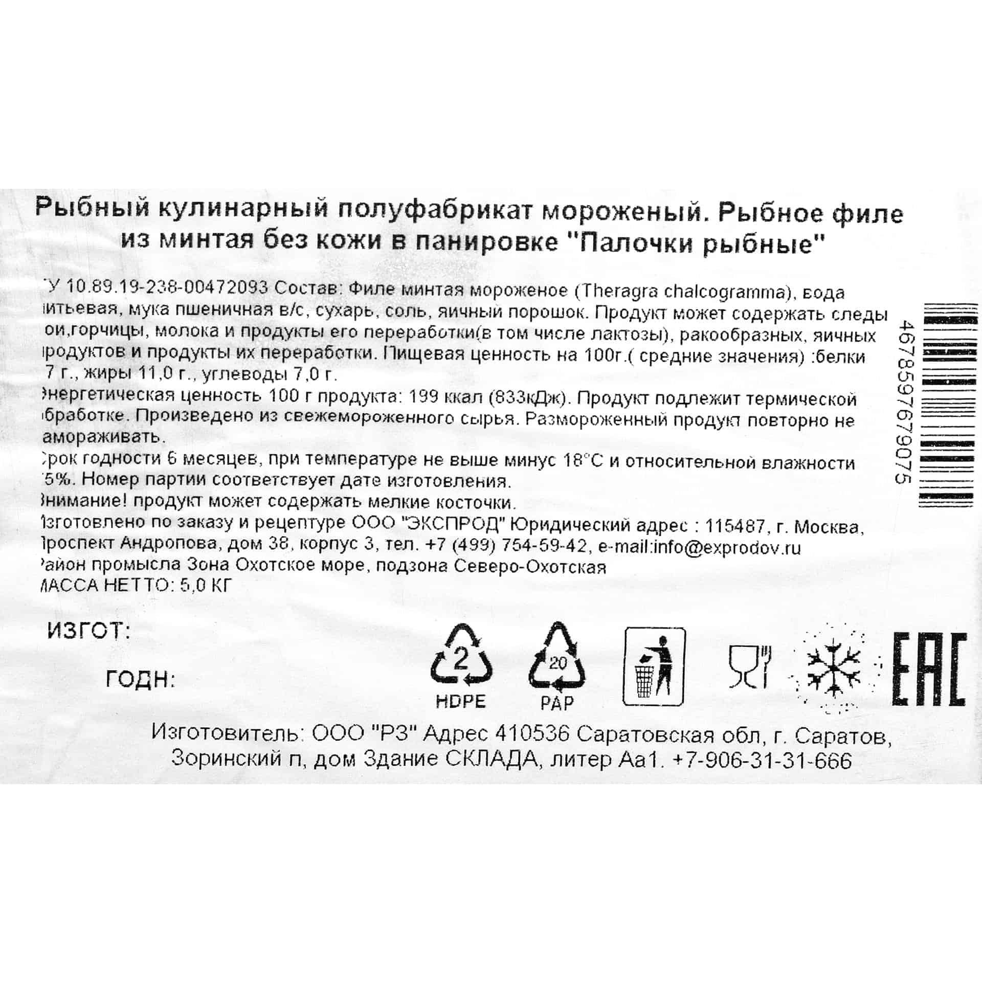 Палочки рыбные в панировке полуфабрикат замороженный Экспродов 5 кг