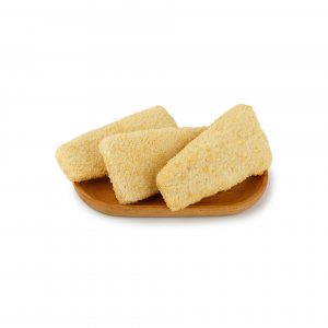 Состав: филе минтая мороженое (Theragra chalcogramma), вода питьевая, мука пшеничная высшего сорта, сухарь, соль, яичный порошок.