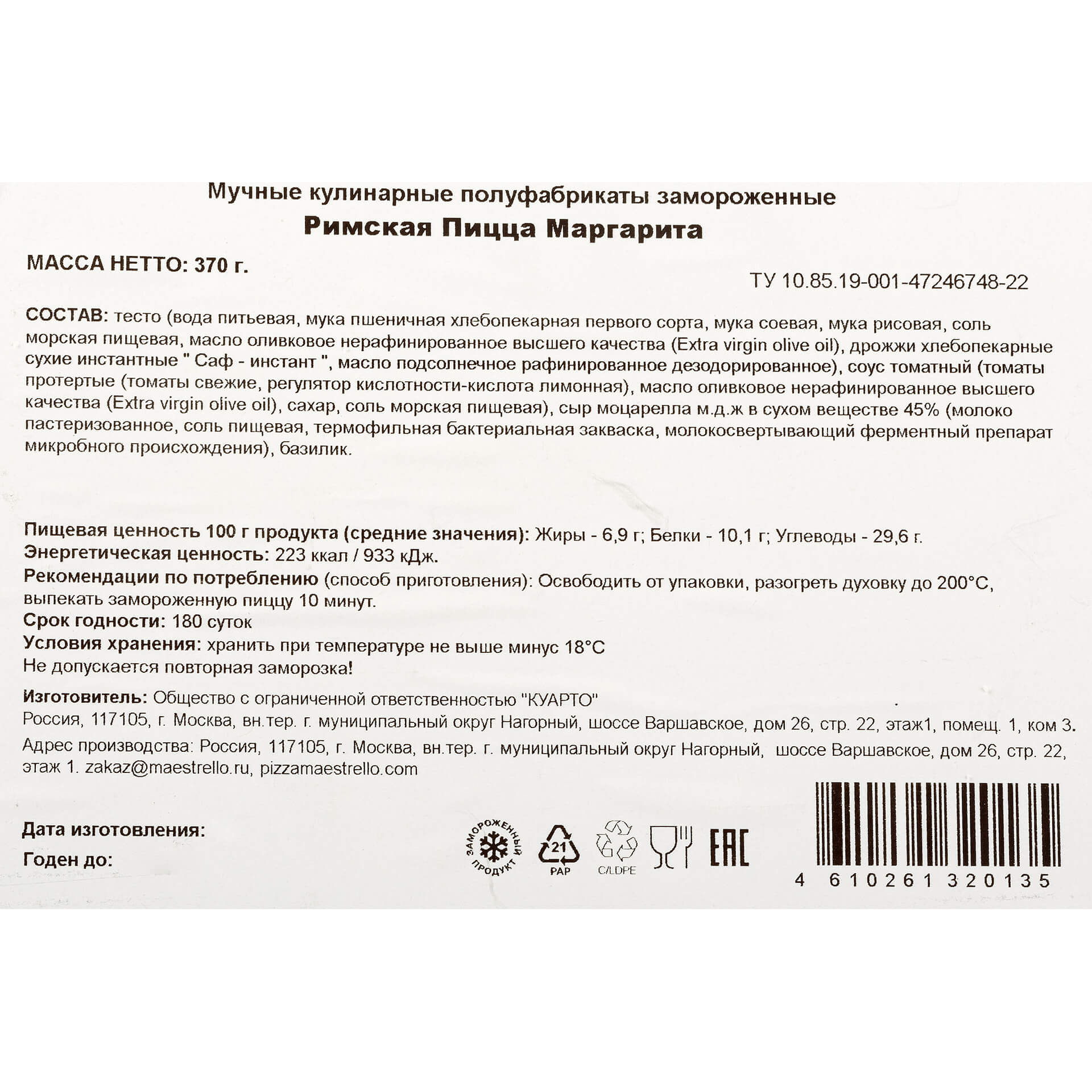 Пицца "Маргарита" с моцареллой полуфабрикат замороженный Maestrello 370 г