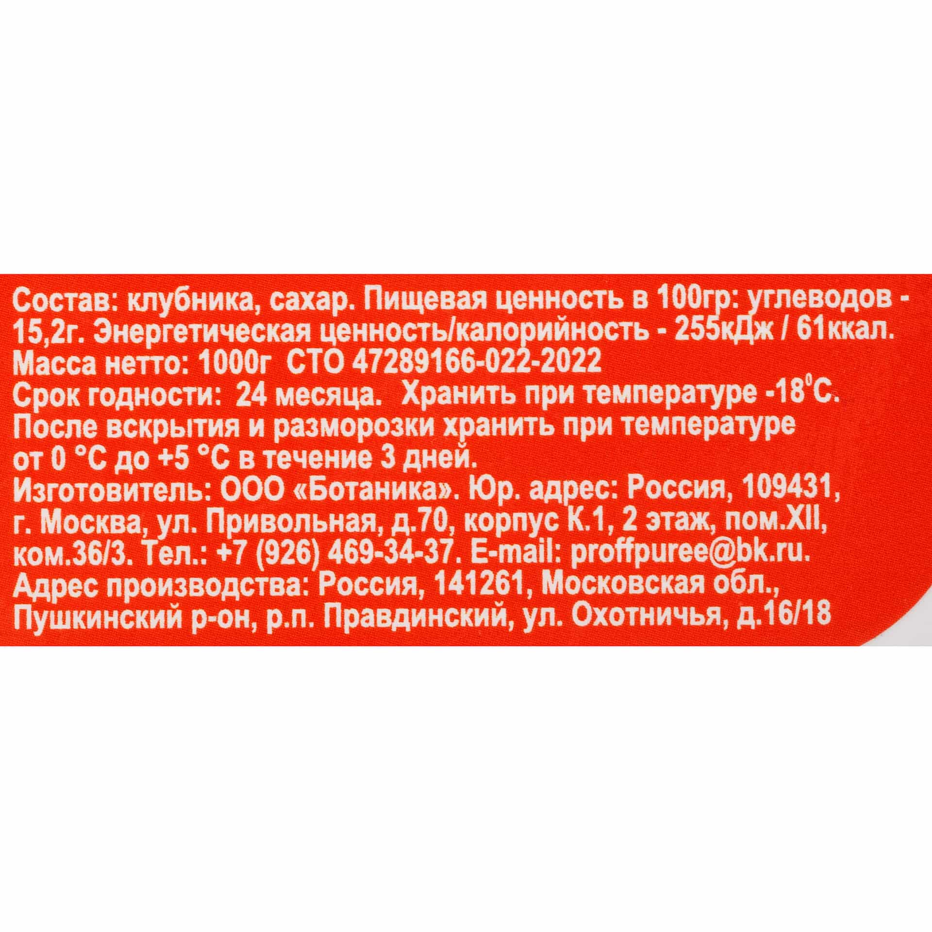 Пюре из клубники шоковая заморозка лоток DOLCE PRIMAVERA 1000 г